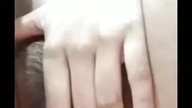 Horny Desi XXX girl masturbating her hairy pink pussy on selfie cam